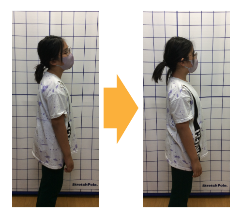 来る前はすぐ背中が丸くなって、お母さんに注意されても正しい姿勢がわかりませんでした。お腹が痛くなったり、疲れやすくなったりもしました。